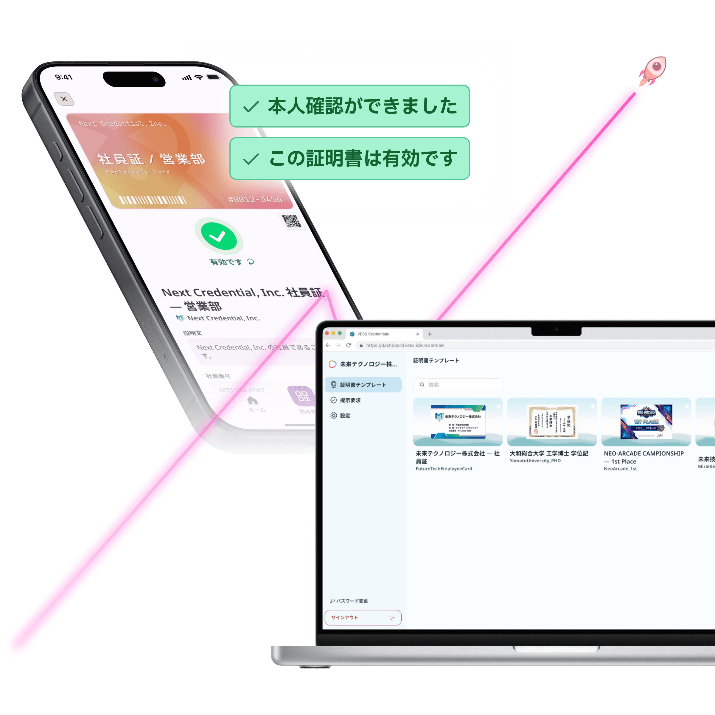 DID/VCのデジタル署名技術により、 改ざん・なりすましを自動判定します。 QRを読み取るだけで有効性がわかります。